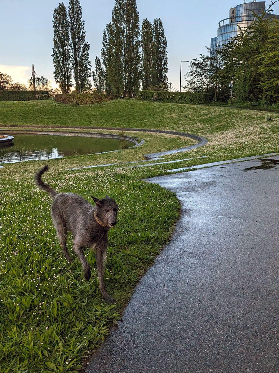 Die Truppe auf dem Killesberg in Stuttgart hatte den Regenschirm zwar immer am Start. Dafür wurde sie begleitet von Windhündin Brenda, die mit der besten Kondition von allen glänzte. 😉