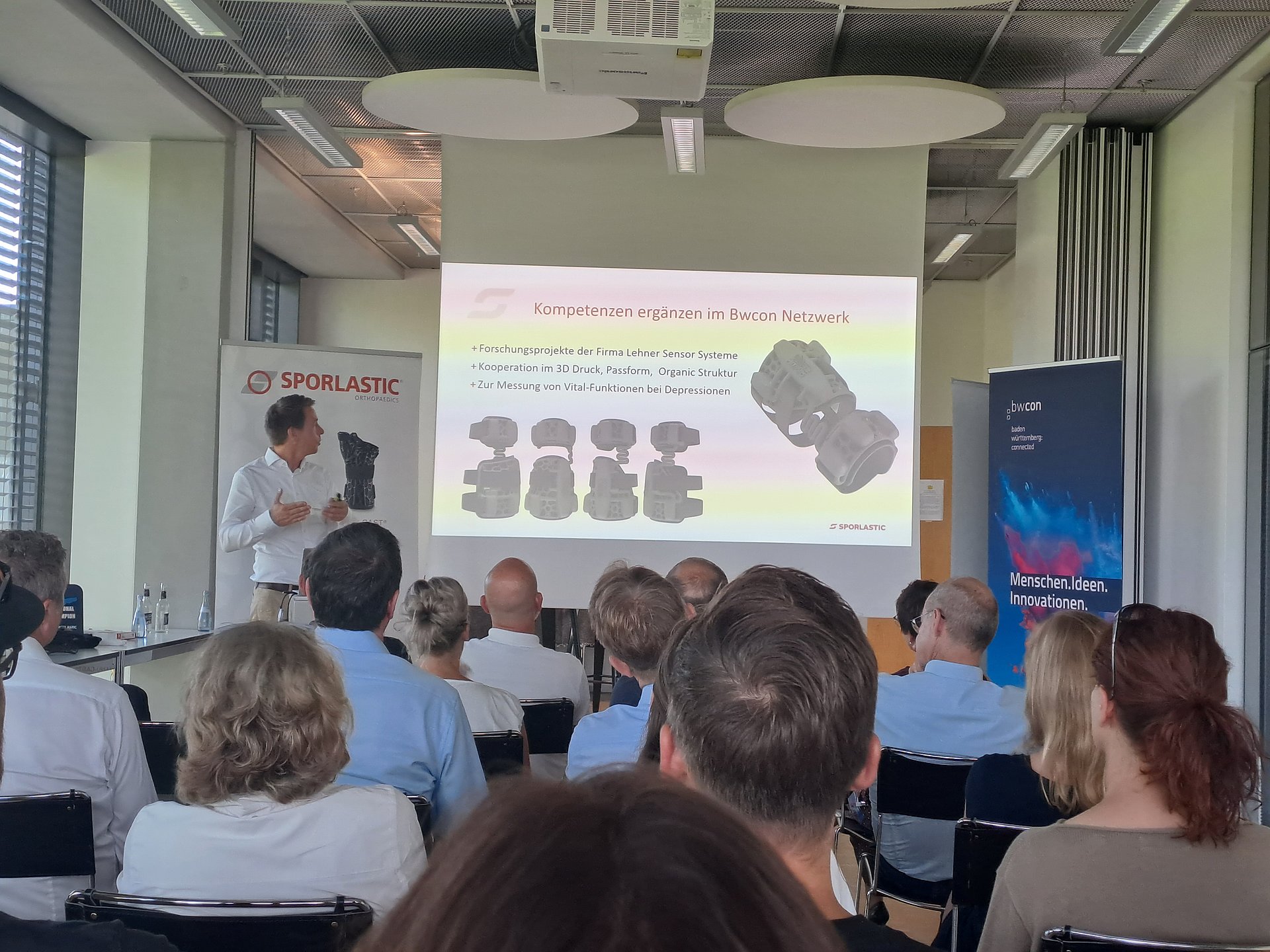 Im Juni folgte das bwcon Netzwerk der Einladung von bwcon Mitglied Sporlastic. Sporlastic gewährte exklusive Einblicke hinter die Kulissen ihres Innovationsbereichs. Das Sporlastic-Team stellte vor, welche Maßnahmen im Hause Sporlastic ergriffen werden, um Innovationen auf den verschiedenen Ebenen voranzutreiben. So entstehen Produktinnovationen beispielsweise unter der Zuhilfenahme von Bionik – also dem kreativen Umsetzen von Anregungen aus der Biologie in die Technik. Aber auch 3D-Druck spielt im Bereich der Produktinnovationen eine große Rolle. Ebenso ist der Wissensaustausch und -transfer, der durch Kooperationen mit Start-ups zur Umsetzung von Innovationen entsteht, nicht zu vernachlässigen.