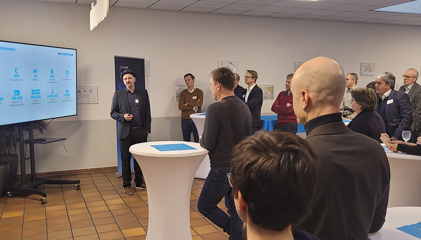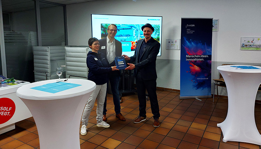 Traditionell wird die Laudatio zur Verleihung des „Regional Champion“-Awards von einem Mitglied des bwcon Regionalboards gehalten. An diesem Abend übernahm Christian Bell, Senior Business Architect bei iteratec GmbH, diese Aufgabe. Gemeinsam mit Anne Dröge, Leiterin des bwcon Regionalbüros Esslingen/Nürtingen/Kirchheim, überreichte er die Auszeichnung feierlich an MOSOLF.