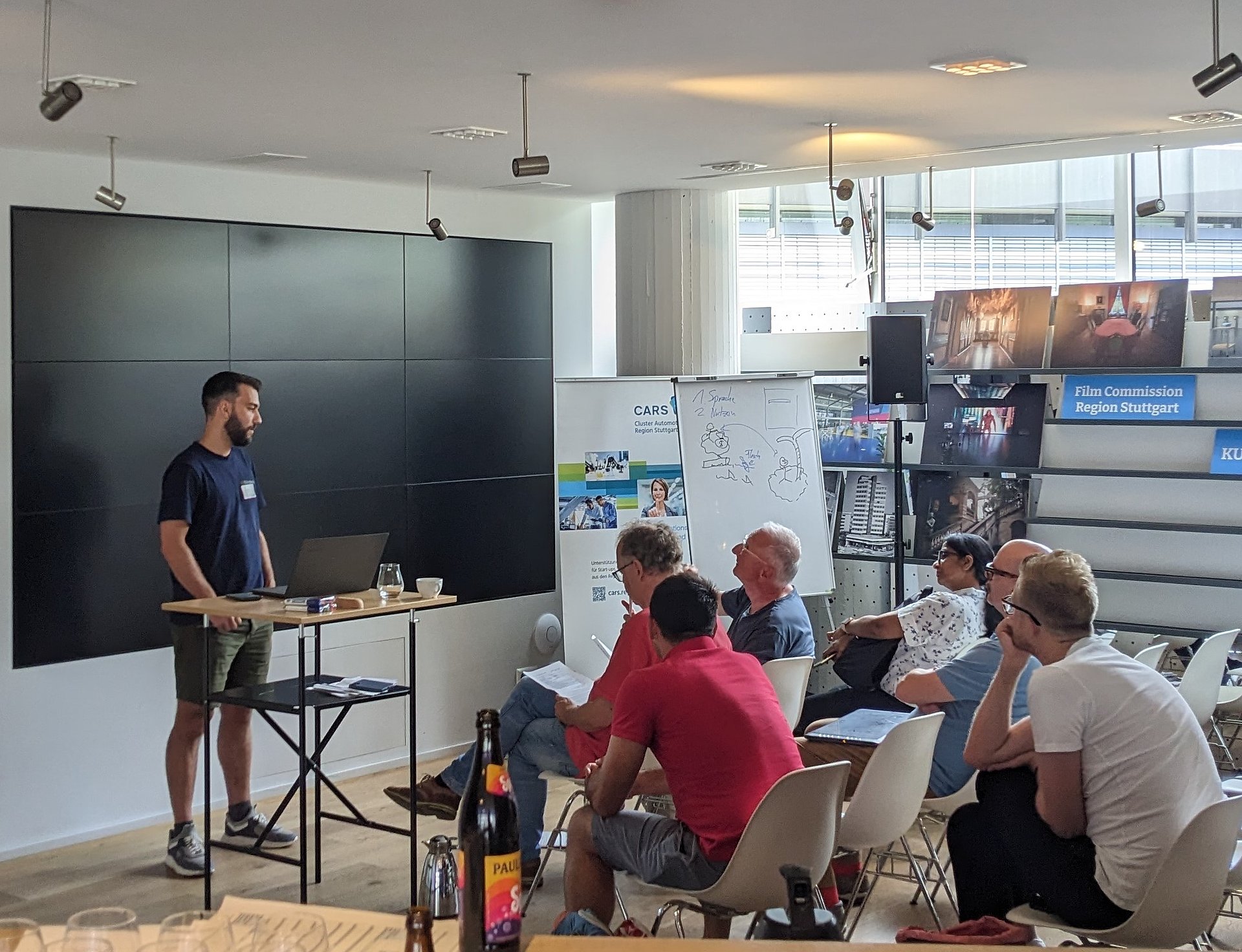 Vergangenen Freitag fand schließlich die Abschlussveranstaltung des Accelerators statt. Gemeinsam mit Frank Motte erstellten die Teilnehmenden einen One-Pager für die Ansprache von Investierenden, in den sie das Erlernte der vergangenen Monate einfließen ließen. Außerdem teilte Frank Motte wertvolle Insider-Tipps aus der Sicht des Investierenden. Zum Abschluss des Tages gab er jedem Team gemeinsam mit Christian Magirus, Leiter des Screening Committees bei den Business Angels der Region Stuttgart e.V., Feedback zum One-Pager.